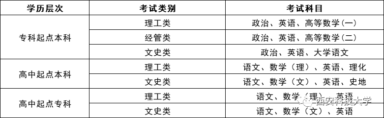 | 报考类别 | 专业名称 | 学习形式 | 学制 |