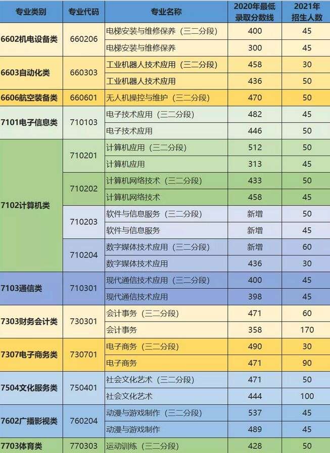 根据学校发布的录取分数线来看,普通中职录取分数线为300分以上,三二分段专业招生分数线为400分以上,因专业不同,所以录取分数线不同。