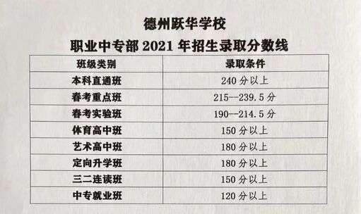 德州跃华学校职业中专部录取分数线